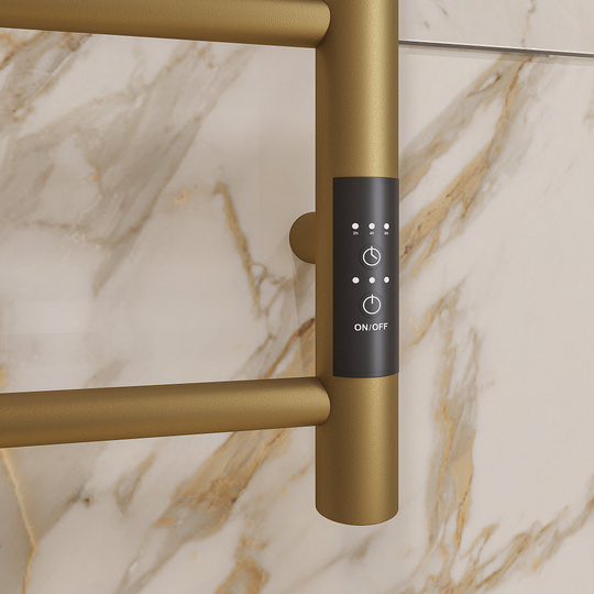 Конструкция полотенцесушителя разработана с учетом максимального удобства использования. Его можно подключить к электросети в любом месте, независимо от расположения розетки - справа или слева. Это обеспечивает гибкость и свободу при выборе места установки. На корпусе полотенцесушителя уже установлена коробка под скрытый монтаж. Она окрашена в цвет корпуса, что позволяет сохранить эстетичный вид прибора и гармонично вписать его в интерьер. Блок управления с двумя кнопками на корпусе дает полный контроль над работой полотенцесушителя. Кнопка включения/выключения позволяет быстро и легко регулировать работу прибора, а кнопка таймера (с возможностью выбора времени — 2, 4 или 6 часов) позволяет настроить оптимальный режим работы, экономя электроэнергию и обеспечивая комфортное использование.