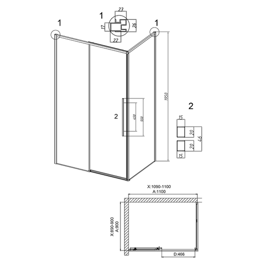 - Одно неподвижное стекло, одна раздвижная дверь;