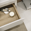 Тумба Меркадо 80 - стильное и функциональное решение для интерьеров в скандинавском и современном стиле. Корпус и фасады выполнены из МДФ в белой матовой краске. Фасады с точным запилом под 45° на торцах, что исключает видимую кромку и позволяет обходиться без ручек, создавая лаконичный и минималистичный дизайн. Два вместительных ящика изготовлены из ЛДСП «Дуб Эльвезия» и оснащены направляющими скрытого монтажа с доводчиком, обеспечивающими плавное и бесшумное закрывание. Тумба установлена на хромированные ножки высотой 10 см, а для надежного крепления предусмотрены подвесы в комплекте.