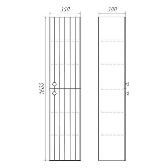 Пенал для ванной Истра 35 с двумя створками. Петли створок оснащены механизмами плавного закрывания. Фасады пенала изготовлены из МДФ, фрезерованы вертикальным узором и облицованы пленкой имитирующей текстуру дерева ясень беленый. Полки из влагостойкого ЛДСП регулируются по высоте. Ручки из цинкового сплава в цвете состаренный черненый. Шкаф-колонна может быть подвешена с правым или левым расположением петель. Для выбора ориентации колонну нужно перевернуть.