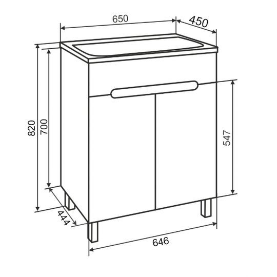 Тумба Olivia 65 оснащена двумя распашными дверцами и одной встроенной полкой. Дверцы легко открываются благодаря удобному вырезу на фасадах.