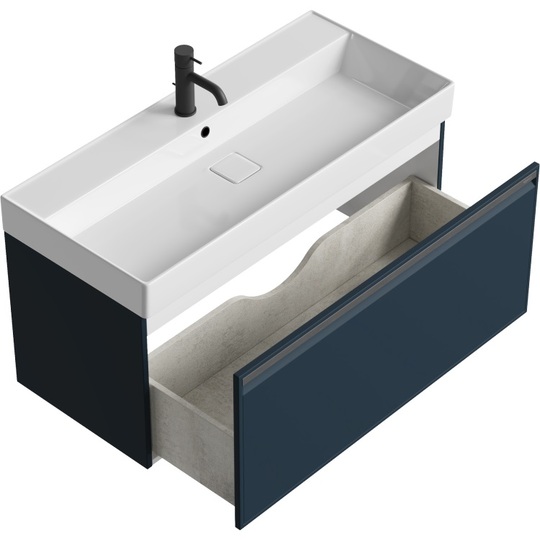 Тумба Pure 100 оснащена одним ящиком с плавным скольжением и мягким закрыванием.
