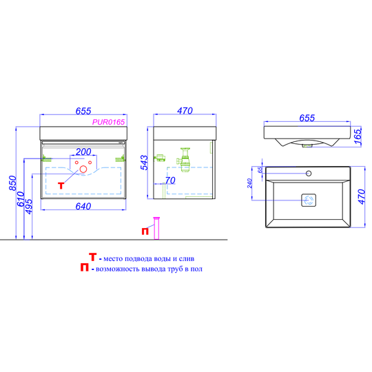 - Тумба Aqwella Pure 66 цвет "серый" с керамической раковиной Вилис 65.