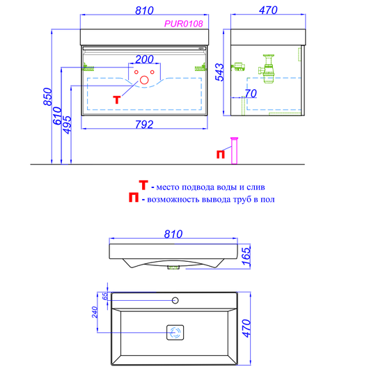 - Тумба Aqwella Pure 81 цвет "серый" с керамической раковиной Вилис 80.