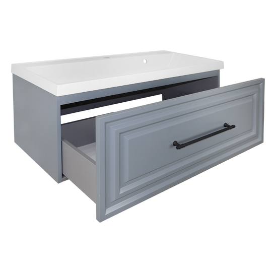 - Тумба Azario Laura 100 цвет "серый матовый" с раковиной из литьевого мрамора Classik 100.