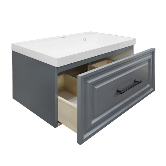 - Тумба Azario Laura 80/1 цвет "серый матовый" с раковиной из литьевого мрамора Classik 80.
