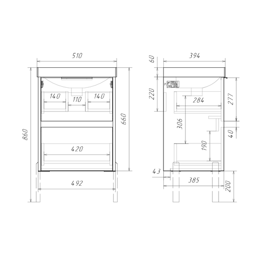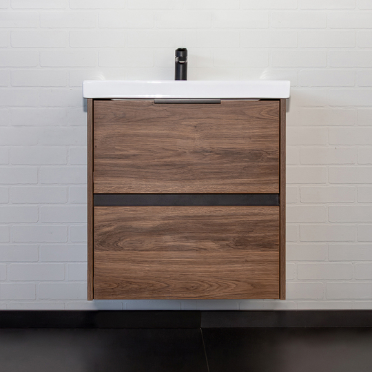 Подвесная тумба Comforty Селенга 50 с двумя вместительными выдвижными ящиками. Направляющие ящиков оборудованы системой плавного закрывания. Верхний ящик открывается черной профильной ручкой. Ручку устанавливать необязательно. Верхний ящик можно открыть за нижний край фасада. Для открытия нижнего ящика нужно потянуть верхний край фасада. Ящики выполнены из ВЛДСП контрастного черного цвета. Тумба подготовлена для подключению коммуникаций снизу и сзади.
