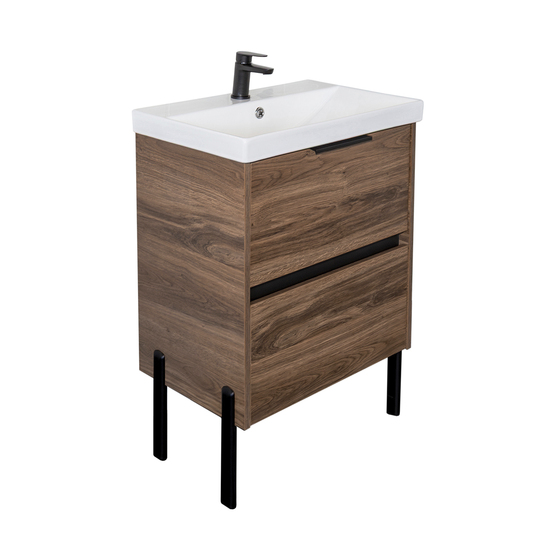При добавлении комплекта мебельных ножек Comforty подвесная тумба превращается в напольную. По желанию можно добавить две, либо четыре опоры.