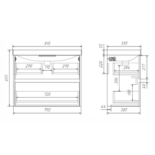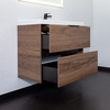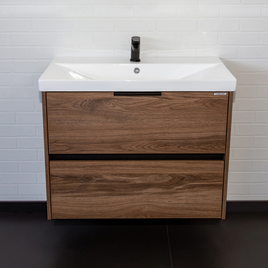 Подвесная тумба Comforty Селенга 80 с двумя вместительными выдвижными ящиками. Направляющие ящиков оборудованы системой плавного закрывания. Верхний ящик открывается черной профильной ручкой. Для открытия нижнего ящика нужно потянуть верхний край фасада. Ящики выполнены из ВЛДСП контрастного серого цвета. Тумба подготовлена для подключению коммуникаций снизу и сзади.