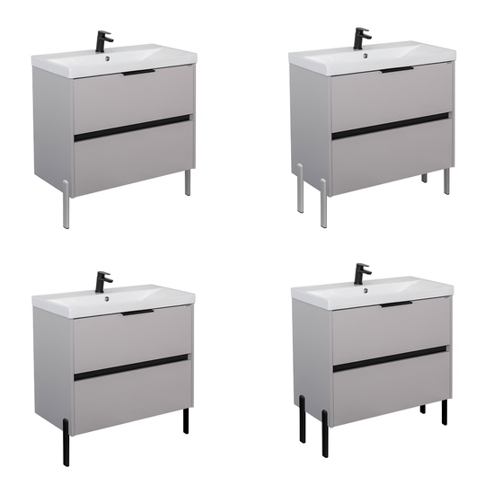При добавлении комплекта мебельных ножек Comforty подвесная тумба превращается в напольную. По желанию можно добавить две, либо четыре опоры. Два цветовых решения ножек: матовый черный и серый шелк.