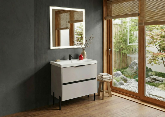 Высококачественное зеркальное полотно с амальгамой на основе серебра. Зеркало оснащено встроенным светодиодным светильником и бесконтактной кнопкой включения подсветки. Функция бесконтактного диммирования - регулирования яркости подсветки. Тип подсветки: фронтальная. Температура внутренней подсветки: 6500К, холодный свет. Зеркало для ванной комнаты с проводом длиной 1,3 м и вилкой подключения в сеть 220В. Задняя часть зеркала закрыта пластиковым кожухом.