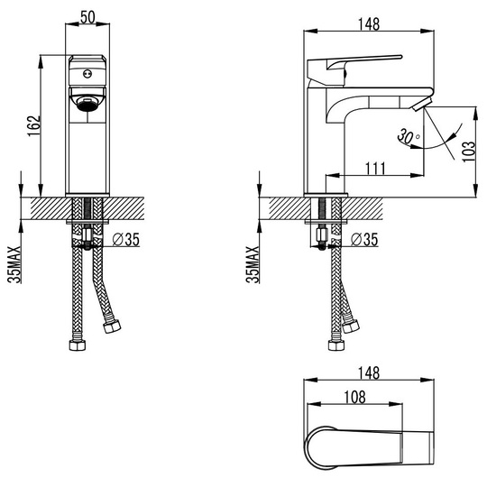 с системой быстрого монтажа, гибкая подводка 60 см, аэратор