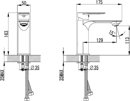 с системой быстрого монтажа, гибкая подводка 50 см, аэратор